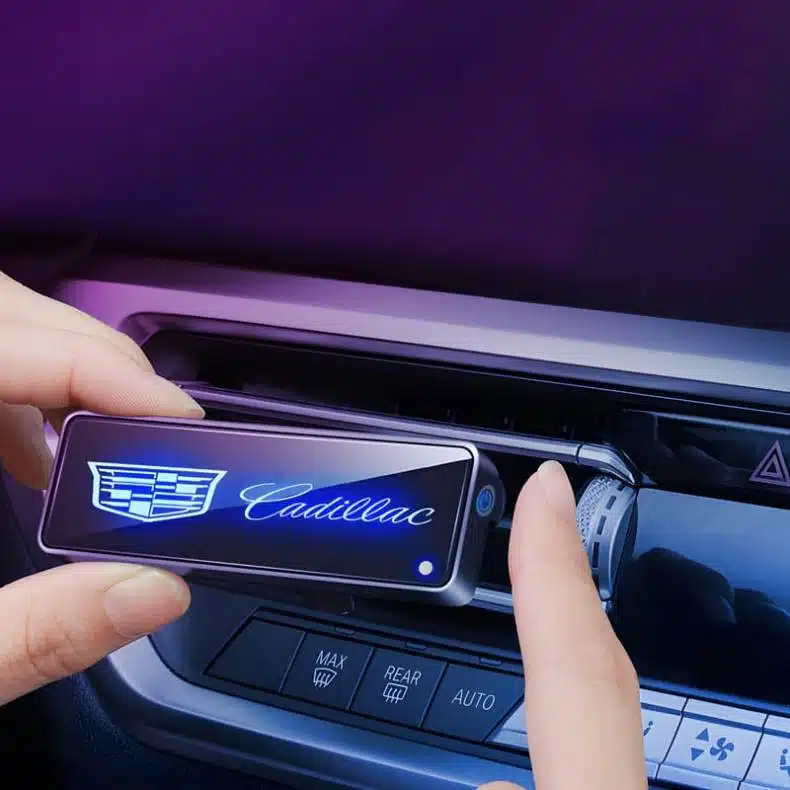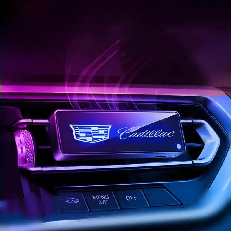 The air freshener has a small, elegant design. It includes the classic Cadillac logo. This design makes your car look stylish and gives a sense of luxury.