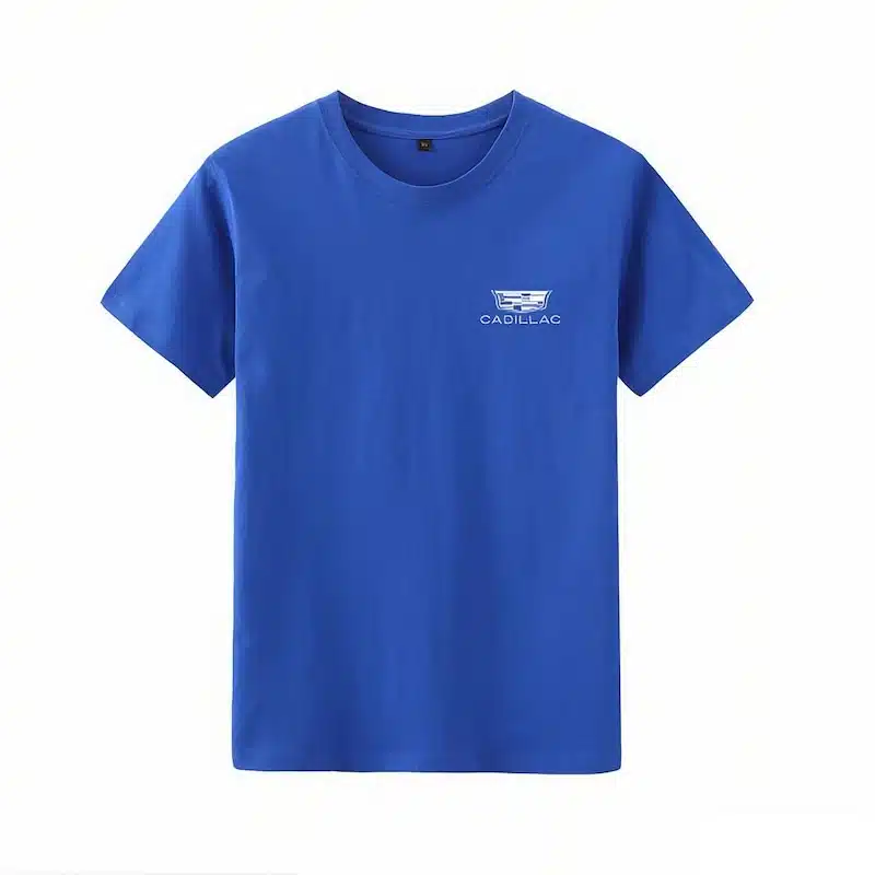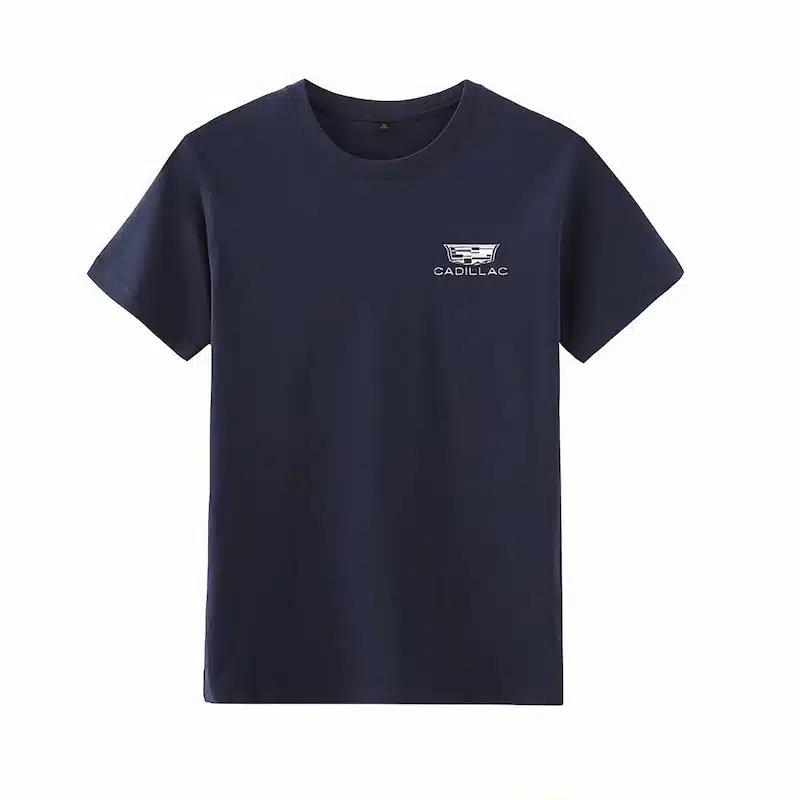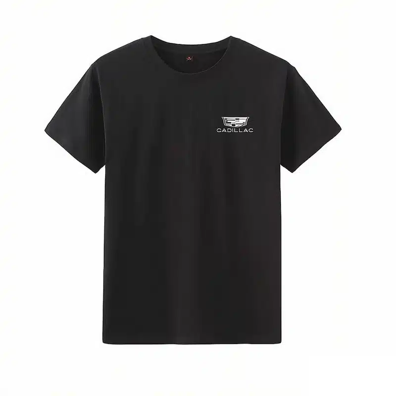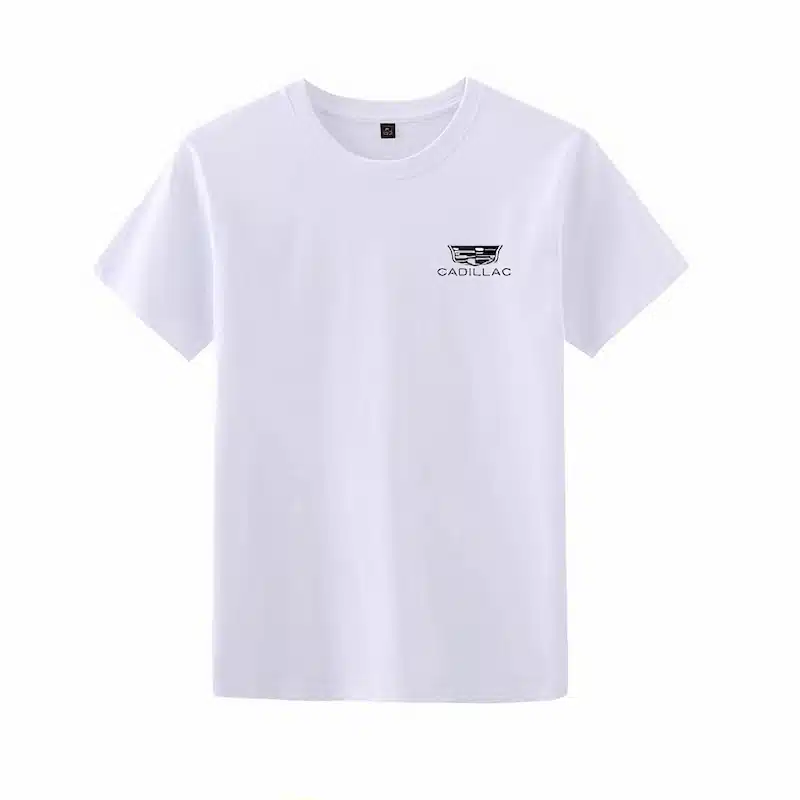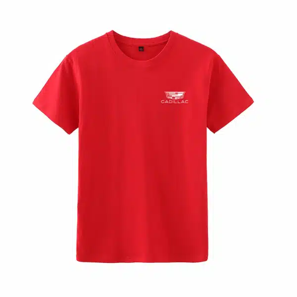 The T-shirt comes in five color options. These colors allow you to create your own style. The printed Cadillac logo and text increase brand visibility. The design looks simple but still stands out.
